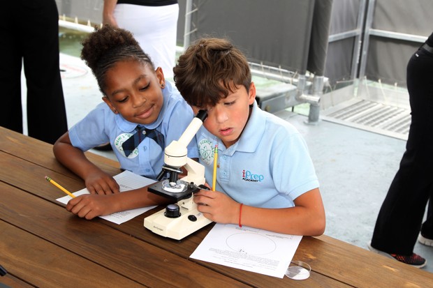 In other cities, student-based citizen science initiatives jibe with broader resiliency goals. On the Florida coast, a floating education platform aims to introduce kids to the tools they’ll need to live more sustainably in a changing world. The Miami Science Barge is a hands-on, off-grid space on the Biscayne Bay. Funded by the Knight Cities Challenge last year, it recently began hosting free field trips for kids in grades K-12. The school curriculum just launched in September; the excursions are fully booked through the end of this year, says the project’s director, Nathalie Manzano-Smith. Students can look at hydroponic veggies, learn about solar power, and ask questions about the food web by peeping plankton and shrimp in the bay and in onboard aquaculture systems.